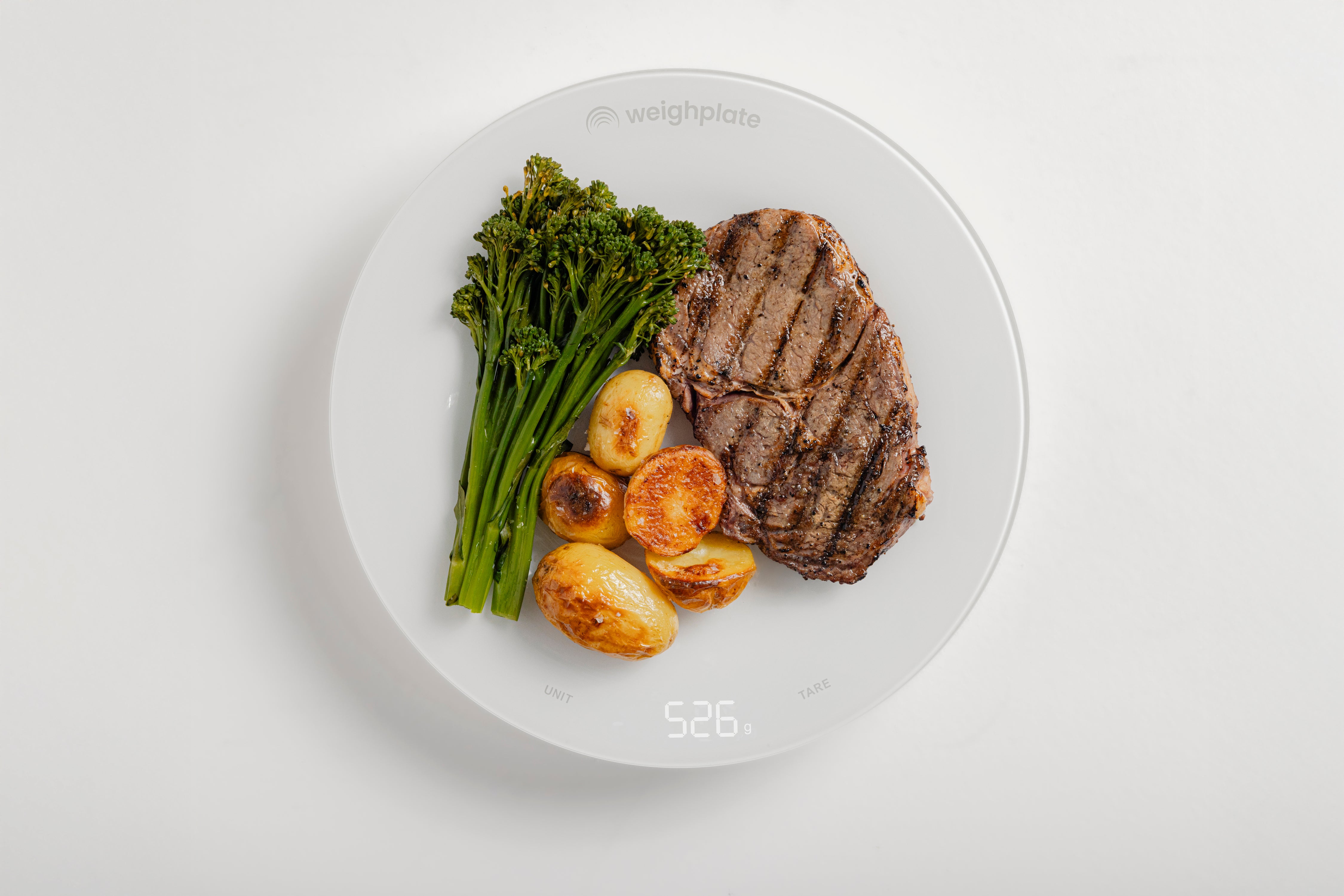 Weigh your food directly on the plate you eat from. No extra tools, no extra steps. Every measurement syncs seamlessly with the WeighPlate app, so tracking your meals is effortless.